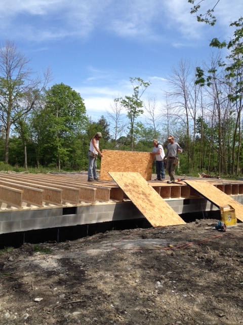 The crew installed I-joists which are manufactured floor joists that simplify construction, reduce cost and use 40-50% less wood than conventional floor joists. This should make the green environmentalists happy...